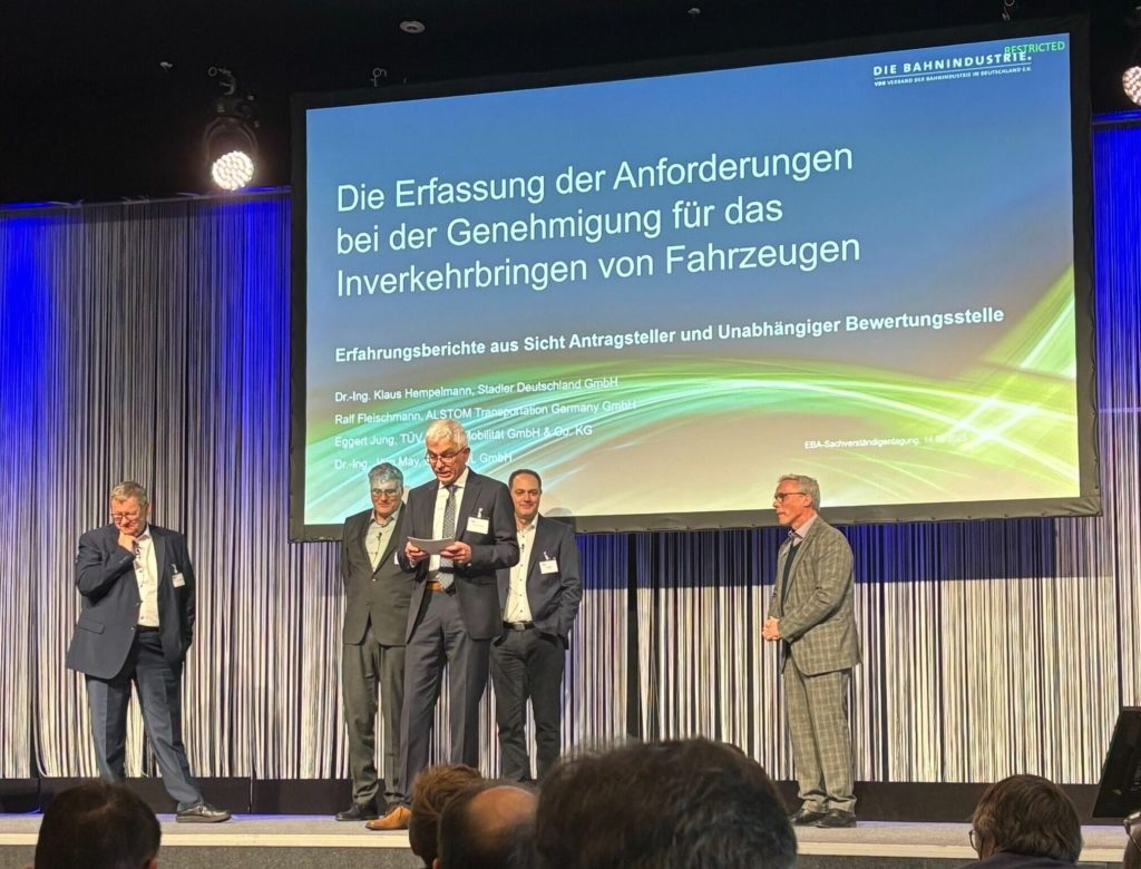 Gemeinsam mit dem TÜV Nord (Eggert Jung), Stadler Deutschland (Klaus Hempelmann) und Alstom (Ralf Fleischmann) hat unser Prüf-Sachverständiger und Gutachter Dr. Jörg May von der #ERC.Gruppe am vergangenen Freitag einen Vortrag mit dem Thema „Erfassung der Anforderungen bei der Genehmigung für das Inverkehrbringen von Fahrzeugen“ auf der 27. Jahresfachtagung der Eisenbahn-Sachverständigen gehalten.